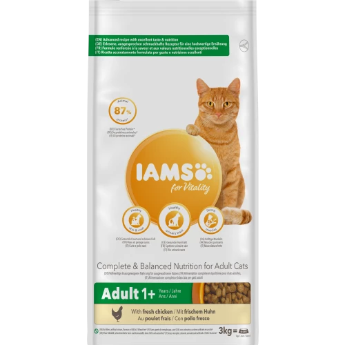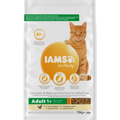 IAMS for Vitality Chicken Adult Dry Cat Food is 100% complete and balanced cat food for your cat to enjoy and thrive on.