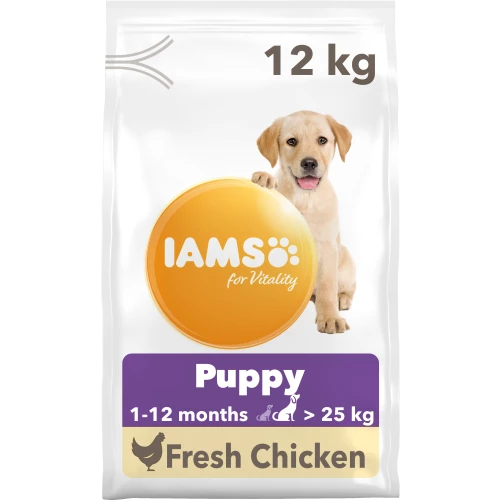 IAMS for Vitality for large breed puppies with Fresh Chicken is a 100% complete and balanced puppy food with up to 85% of animal protein (out of total protein). With no fillers, artificial colours, flavours or GMOs and a wheat free recipe (produced in a factory that handles wheat). Only you know your pet’s individual character, but IAMS knows the nutrition they need for the 7 signs of healthy vitality.