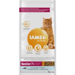 IAMS for Vitality for senior cats with Ocean Fish is a 100% complete and balanced food for your cat. Our improved recipe contains 88% of animal protein (out of total protein) and added glucosamine to support healthy joints. It is formulated to support urinary health and the strong immune system of your pet. With no fillers, artificial colours, flavours or GMOs and a wheat free recipe (produced in a factory that handles wheat). Only you know your pet’s individual character, but IAMS knows the nutrition they need for the 7 signs of healthy vitality.