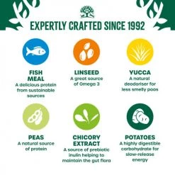 Containing linseed, a naturally rich source of omega fatty acids to help nourish and soothe skin irritations, carrot for wholesome fibre and roughage, and seaweed and chicory to help in the production of friendly bacteria in your canine’s tummy, James Wellbeloved is the ideal complete meal to keep your pet prepared for long walks and extended stick chasing sessions!