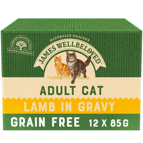 James Wellbeloved Grain Free Lamb Adult Cat Pouches is a fantastic dietetic food, excellent for the reduction of ingredient and nutrient intolerances. This recipe contains selected protein sources (lamb) and selected carbohydrate (potato and cassava) for an excellent taste your cat will love.