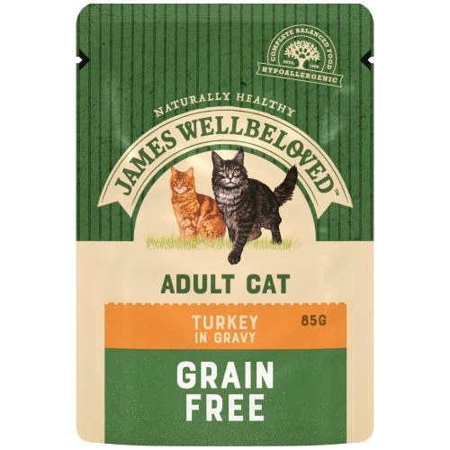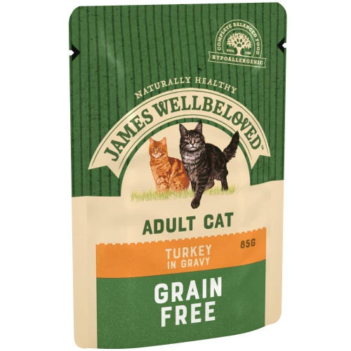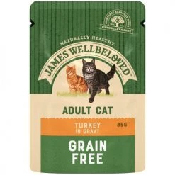 James Wellbeloved Grain Free Turkey Adult Cat Pouches contains selected protein sources (turkey) and selected carbohydrate (potato and cassava) for an excellent taste your cat will love.