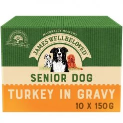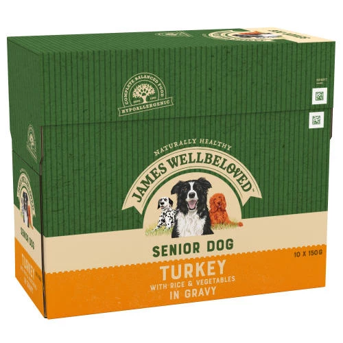 James Wellbeloved Turkey with Rice & Vegetables in Gravy is a delicious wet food for senior dogs over 7 years of age (or over 10 for small breeds), and is hypoallergenic for pets with skin or digestive sensitivities. A delicious complete meal or a tempting topper to dry food.