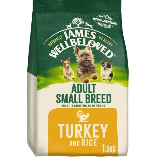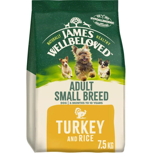 James Wellbeloved Turkey & Rice Small Breed Dry Adult Dog Food has been formulated and designed for the specific needs of small breed dogs aged over 6 months and weighing up to 10kg.