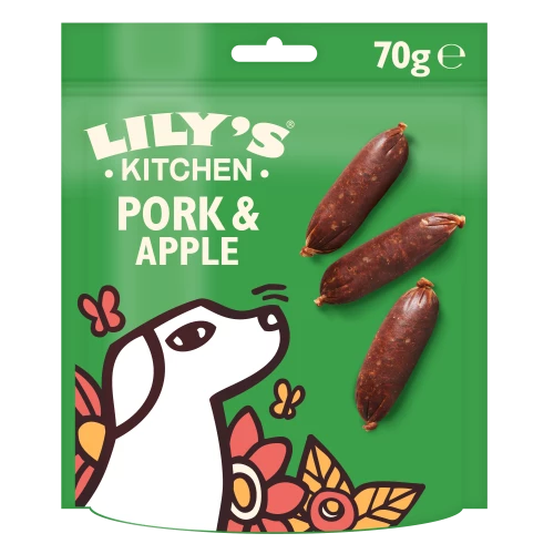 Lilys Kitchen Cracking Pork and Apple Sausages Dog Treats are scrumptious little sausages, packed with irresistible, proper meat, you’ll get more waggs than ever before!