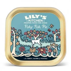 Lilys Kitchen Fishy Fish Pie with Peas Dog Food is a tempting fishy recipe is nutritionally complete, grain free, and packed full of freshly prepared salmon, herring and turkey together with market vegetables and botanical herbs.The sustainable fish we use here are a wonderful source of essential fatty acids including omega 3, which is great for helping to maintain a healthy skin and coat. A tried and tested favourite!