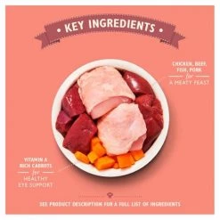 Organic Chicken 30%, Organic Pork 12%, Organic Beef 10%, Organic Fish 4%, Organic Carrots, Chelated Minerals