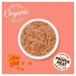 All that fantastic quality organic meaty and fishy greatness means this dish is as nourishing as it is delicious. Complete and balanced, it includes essential taurine for eye and heart health, vitamins and chelated minerals for all round health and Omega 3 and 6 to encourage healthy skin and fur. There’s also added carrots to the mix to make it extra tempting, and for added vitamin A which is great for eye health!