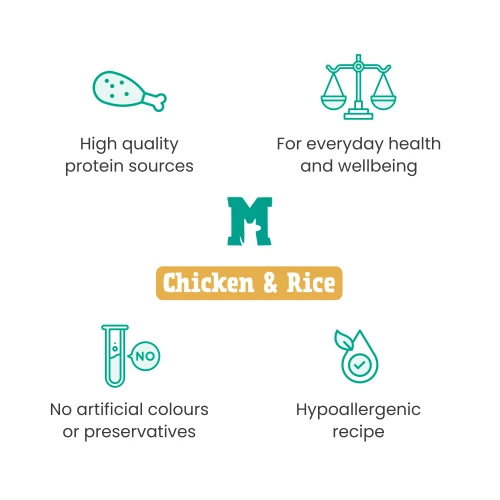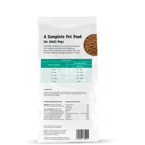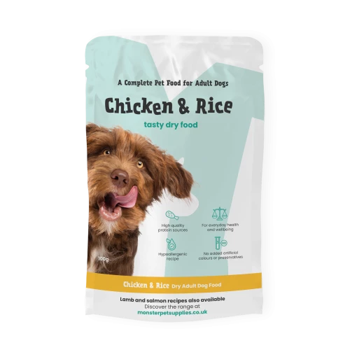 Carefully crafted by our team of experts, Monster Pet Foods Chicken & Rice Dry Adult Dog Food is the paw-fect nutritionally complete pet food for adult dogs.