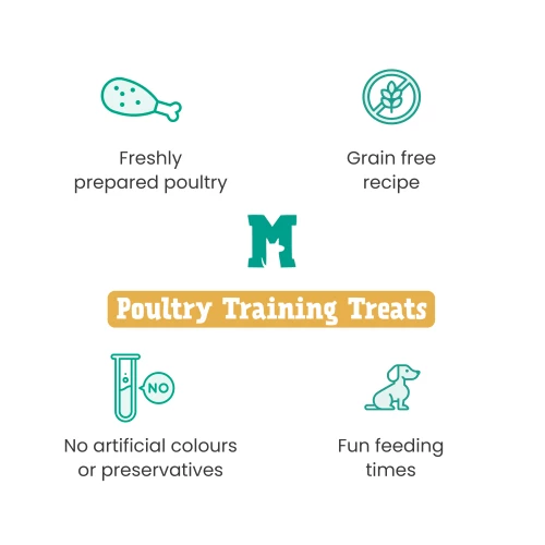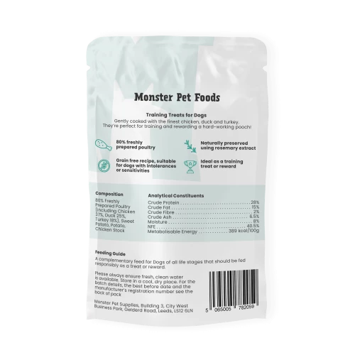 Carefully crafted by our team of experts, Monster Pet Foods Poultry Training Treats for Dogs are perfect for rewarding hard-working pooches and playful puppies of all ages!
