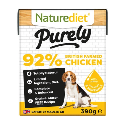 Naturediet Purely 92% British Farmed Chicken Wet Adult Dog Food Cartons are sure to keep tails wagging with a meal of optimal nutrition and essential ingredients.