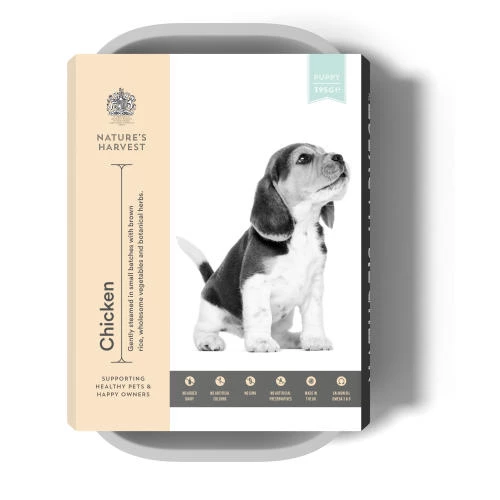 Natures Harvest Chicken & Brown Rice Wet Puppy Food has been gently steamed to give it a delicious taste that your puppy will find simply irresistible!