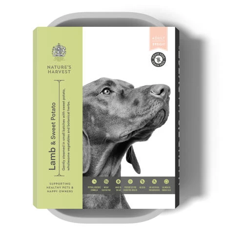 Natures Harvest Grain Free Lamb & Sweet Potato Wet Adult Dog Food formulated without grains, or cereals such as wheat, barley, maize and rice.