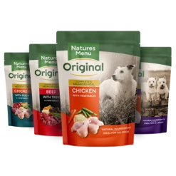 Free from common fillers like wheat, corn, bran, and soya, Natures menu pouches contain a minimum of 60% meat – and no meat derivatives. With meats rich in protein and iron as well as hypoallergenic meats such as duck and rabbit.