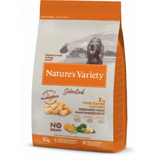 Nature’s Variety Selected for medium and large-size dogs is a complete and balanced dry dog food with a difference. Its high-meat recipe features quality, deboned free range chicken as the main ingredient with a blend of wholesome fruit, vegetables and botanicals. No artificial flavours, colours or preservatives and no grain. Just quality, natural ingredients that are rich in nutrients to support your dog’s health and wellbeing.