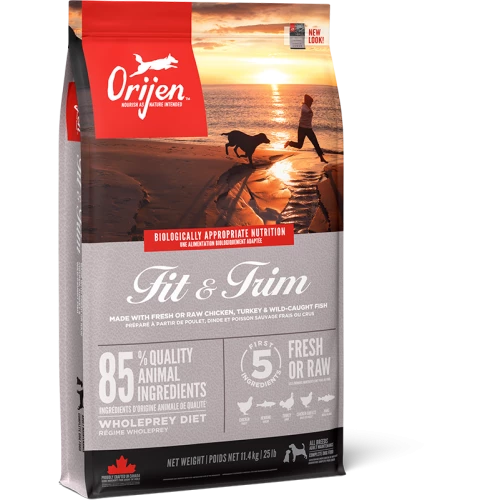 ORIJEN Fit & Trim diet is optimised to support lean muscle mass and is specifically designed to support peak physical conditioning. Packed with WholePrey animal ingredients like organs and bone, ORIJEN food is made with the most nutrient-dense, succulent parts of the prey to deliver the nutrition dogs need. With 85%* quality poultry & fish ingredients and a freeze-dried liver coating, this diet is beyond comparison.