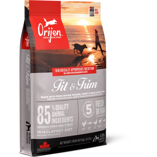 Orijen Fit & Trim Adult Dog Food has been crafted to help your dog thrive with the power of protein-rich recipes that provide peak nourishment. Dogs are ancestral carnivores, so they need a Biologically Appropriate diet rich and varied in whole animal ingredients.