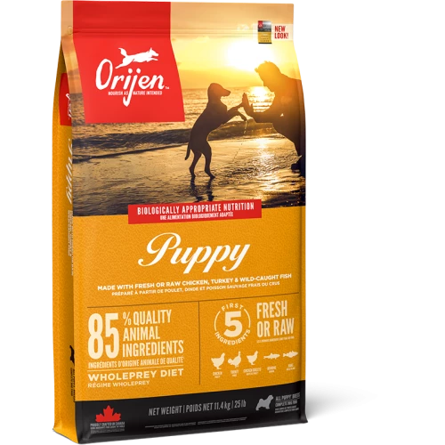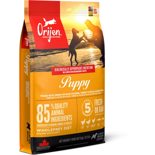 Orijen Puppy Food has been crafted to help your puppy thrive with the power of protein-rich recipes that provide peak nourishment. All puppies do best on a Biologically Appropriate diet rich in protein and fat from quality animal ingredients to support their development.