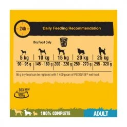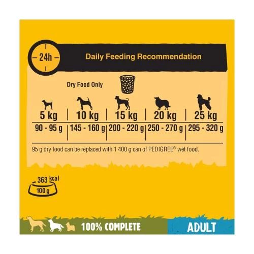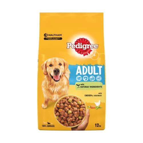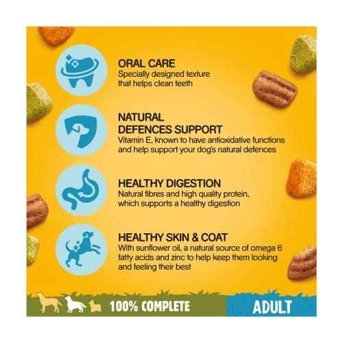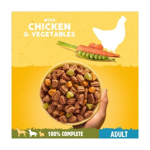 Pedigree Chicken & Vegetables Complete Dry Adult Dog Food is a deliciously crunchy mouth-watering utterly moreish Pedigree Complete Vital Protection chicken Dog food packs a punch of flavour which leaves your dog satisfied after every bowlful. Sensitive on the digestive system the complete vital protection meal contains natural prebiotic fibres and high quality proteins so that your dog is kept fit, healthy and happy. So whilst pedigree use their years of experience and expertise to design the most nutritionally balanced foods which keeps the bounce in your dog’s step letting you watch as they grow and mature their personalities.