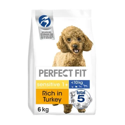 Perfect Fit Turkey Sensitive Small Breed Dry Adult 1+ Dog Food has been expertly formulated to provide healthy gut support for your dog. PERFECT FIT Dog Dry Sensitive dog food is developed with our vets and pet nutritionists and contains prebiotics to help stimulate a healthy gut flora.