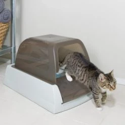 The self contained crystal litter is ultra absorbent and 5 x better at controlling unwanted smells than regular litter, and the disposable trays feature a leak proof lining for fuss free cleanup. The privacy hood allows your cat to feel safe and secluded and also reduces litter tracking, whilst a health counter tracks how many times your cat uses the box.