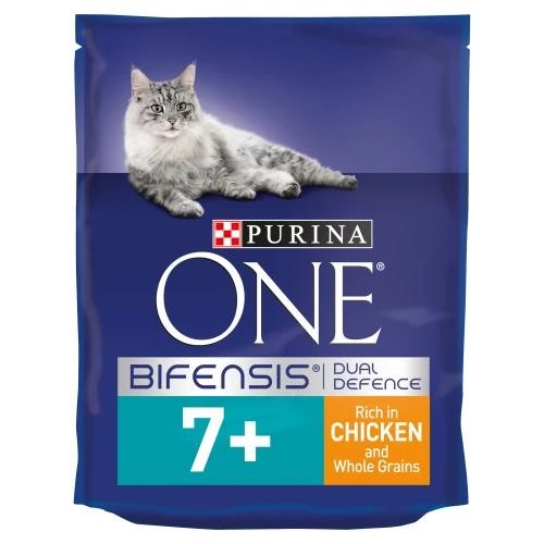 Purina ONE Senior 7+ is made for the mature cat. As a cat gets older they need to maintain their health. Purina Vets and Nutritionists have developed this product that has triple action formula of yeast, prebiotics and antioxidants to help the gut and natural defences.