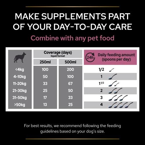 At PURINA PRO PLAN, we believe nutrition is the foundation for long-term health and well-being, PRO PLAN offers outstanding and great-tasting nutrition to keep your dog in long-term health, through main meals and complementary products. PRO PLAN has developed a range of targeted complementary products to help support with mobility, immunity, vitality, digestion, skin & coat and well-being.