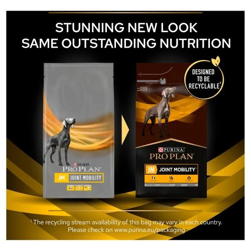 PRO PLAN Canine JM Joint Mobility Dog Food is an appetising diet, specially designed to provide complete nutrition for dogs with joint problems. A balanced pet food rich in Omega-3 fatty acids and EPA to promote healthy joints and cartilage in dogs of all ages, Canine JM has been shown to improve the gait and mobility of dogs suffering with osteoarthritis.
