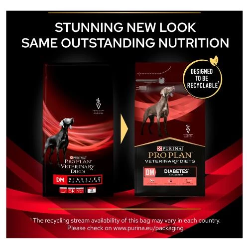 Purina Pro Plan Veterinary Diets Canine DM Diabetes Management has been formulated with low levels of carbohydrate and optimal levels of fibre to reduce the rise in blood glucose that happens soon after meals. Natural bean extract is also included as it has shown to manage blood sugar levels after a meal and is high in anti-oxidants to help neutralise the free radicals produced with diabetes.