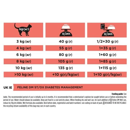 PURINA VETERINARY DIETS DM is a scrumptious clinical recipe designed to help diabetic adult cats better regulate their glucose levels, scientifically demonstrated to minimise your pet’s reliance on external insulin sources. Formulated with exceptionally low carbohydrate levels in order to reduce hyperglycaemia, Feline DM is also rich in vitamin E, an antioxidant, to help counteract the increased oxidative stress that can arise in diabetic cats.