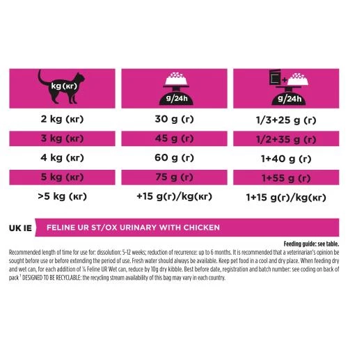 Please note, PURINA VETERINARY DIETS UR St/Ox is not suitable for pregnant mums, growing kittens, cats suffering from chronic renal failure, or cats with fluids retention such as ascites and oedema.
