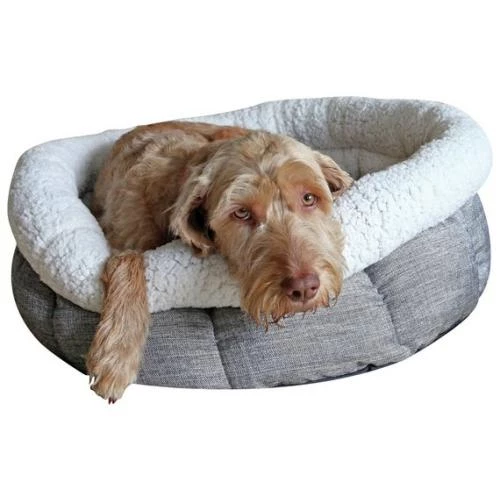 It’s a snuggly, deep and round pet bed. Lovely neutral coloured tweed outer material is complemented by a soft teddy bear fleece inner fabric. Stylish and modern for today’s home. Machine washable at 30 degrees.