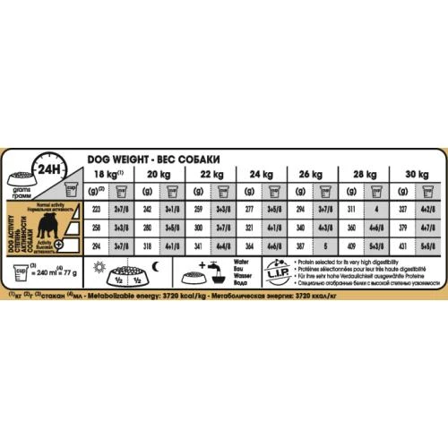 Suitable for dogs over 12 months old, ROYAL CANIN Bulldog Adult is specially formulated with the nutritional needs of your adult Bulldog in mind. ROYAL CANIN Bulldog Adult helps to maintain a healthy balance of intestinal flora. This not only contributes to the general health of your dog’s digestive system, but also helps to reduce the odour of your dog’s stools. This exclusive formula also helps to support the skin’s barrier role. Because ROYAL CANIN Bulldog Adult’s specific combination of nutrients helps to maintain skin health, this has a positive effect on your dog’s coat health too. ROYAL CANIN Bulldog Adult is enriched with Omega-3 fatty acids known as EPA and DHA. These nutrients help to support the good health of your Bulldog’s bones and joints. What’s more, the kibble in ROYAL CANIN Bulldog Adult is tailor-made exclusively for the Bulldog breed. Because this breed has a turned up nose and an upper jaw that’s shorter than the lower one, the size and shape of the kibble has been specially adapted to make it easy for your dog to pick up.