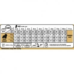 Additives: Vitamin A: 30500 IU, Vitamin D3: 800 IU, Vitamine E: 630 mg – E1 (Iron): 38 mg, E2 (Iodine): 3.8 mg, E4 (Copper): 12 mg, E5 (Manganese): 50 mg, E6 (Zinc): 104 mg, E8 (Selenium): 0.07 mg – Taurine: 2.2 g, L-carnitine: 400 mg – Technological additives: Clinoptilolite of sedimentary origin: 10 g – Sensory additives: Yucca extract: 125 mg – Preservatives – Antioxidants.