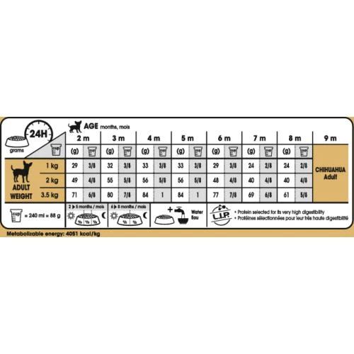 Suitable for Chihuahuas up to 8 months old, ROYAL CANIN Chihuahua Puppy is specially formulated with all the nutritional needs of your young dog in mind. Growth is an essential stage in your puppy’s life – it’s the time of important physical changes and new discoveries. During this key period, your puppy’s immune system is developing gradually. ROYAL CANIN Chihuahua Puppy contains a patented complex of antioxidants (including vitamin E) that help to support your puppy’s natural defences while they’re still developing. The exclusive, tailor-made kibble in ROYAL CANIN Chihuahua Puppy is specially adapted to the Chihuahua puppy’s very small jaws – making it easy for your puppy to pick up and chew. The exclusive formulation and selected flavours contribute to the high palatability level of this food – meaning it satisfies the appetite of even the fussiest of Chihuahuas! What’s more, ROYAL CANIN Chihuahua Puppy’s formula contains a variety of beneficial nutrients that help to support and maintain your puppy’s digestive health. These carefully balanced nutrients not only help to reduce the volume of your dog’s faecal matter, but also the smell of it!