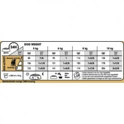 Composition: Dehydrated poultry protein, rice, maize, wheat, vegetable protein isolate*, animal fats, hydrolysed animal proteins, beet pulp, maize gluten, minerals, fish oil, soya oil, yeasts and parts thereof, fructo-oligo-saccharides, hydrolysed yeast (source of manno-oligo-saccharides), borage oil (0.1%), marigold extract (source of lutein), hydrolysed crustaceans (source of glucosamine), hydrolysed cartilage (source of chondroitin). *L.I.P.: protein selected for its very high digestibility. Crude ash: 6%. Crude fibre: 1.4%. Crude oil fats: 16%. Moisture: 0%. Protein: 30%.