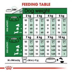 Suitable for small breed dogs over 10 months old that weigh up to 10kg, ROYAL CANIN Mini Adult is specially formulated with all the nutritional needs of your adult mini dog in mind. Because small breed dogs like yours tend to have high energy needs, ROYAL CANIN Mini Adult is formulated with nutrients that help to meet those energy needs, whilst also helping your dog to maintain a healthy weight. Some small breed dogs have fussier appetites than others, that’s why ROYAL CANIN Mini Adult’s formula contains a selection of exclusive flavourings. It is this enhanced palatability that directly appeals to even the fussiest of dogs. ROYAL CANIN Mini Adult also contains a variety of nutrients that help to support and maintain the health of your dog’s skin and coat. To cater to each dog’s individual preferences, ROYAL CANIN Mini Adult is also available as wet food in delicious gravy. If you’re considering mixed feeding, simply follow our feeding guidelines to ensure your dog gets an accurate amount of both wet and dry food for optimal benefit.