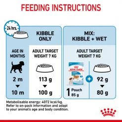 ROYAL CANIN Mini Puppy food The shape of the kibble is small and easy to chew, perfect for your puppy’s small mouth, and both the smell and flavour are optimised to tempt even the fussiest of dogs; it also helps to support its dental health and general oral hygiene. By containing a combination of nutrients with high quality protein (such as L.I.P – known for its high digestibility) as well as prebiotics, ROYAL CANIN Mini Puppy supports the digestive health and balance of intestinal flora, which contributes to good stool quality by reducing faecal smell and quantity.