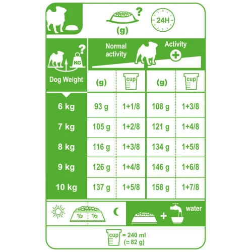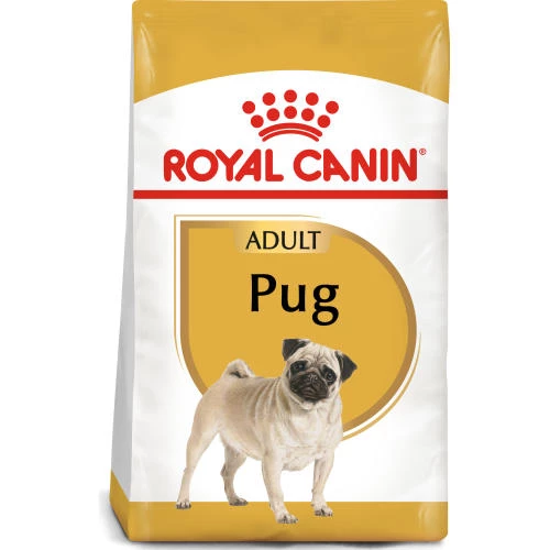 Royal Canin Pug 25 dog food is a delightful way of catering to the complete nutritional requirements of your adult squashy faced friend! Due to their short muzzles, Pugs can have trouble eating regular dog food, however Royal Canin’s unique formula kibbles are designed to be easily picked up and to promote chewing, making sure they get the most out of their food.