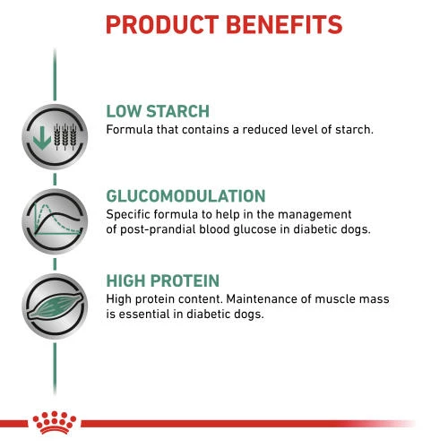 - Helps reduce net energy supply and maintenance of muscle mass essential in diabetic dogs