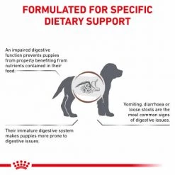 ROYAL CANIN Gastrointestinal Puppy is specially formulated to support the nutritional needs of puppies with digestive sensitivities. To support healthy digestion and transit, ROYAL CANIN Gastrointestinal Puppy contains a specific blend of fibres including prebiotics. This product boasts a high energy formula with adapted levels of nutrients to meet the dietary needs of your growing puppy. The exclusively designed ROYAL CANIN Gastrointestinal Puppy kibble can be easily rehydrated to encourage increased food intake in puppies with a decreased appetite. As part of the ROYAL CANIN Veterinary Range, it’s important that this product is only given to your pet when recommended by a veterinary professional.
