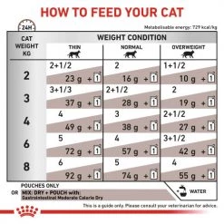 ROYAL CANIN Gastrointestinal Moderate Calorie in Gravy is specially formulated to support the nutritional needs of overweight adult cats with digestive sensitivities. This highly digestible formula boasts a good balance of fibres – including prebiotics – to support healthy digestion and transit. Thanks to its moderate calorie content, ROYAL CANIN Gastrointestinal Moderate Calorie in Gravy helps to limit weight gain in overweight cats or cats with a tendency to gain weight. ROYAL CANIN Gastrointestinal Moderate Calorie in Gravy is a highly palatable diet that helps to stimulate your cat’s appetite whilst helping them to feel full. As part of the ROYAL CANIN Veterinary Range, it is important that this product is only given to your pet when recommended by a veterinary professional.