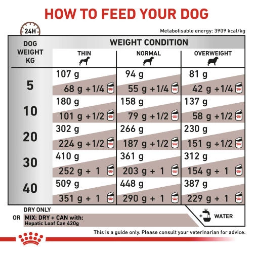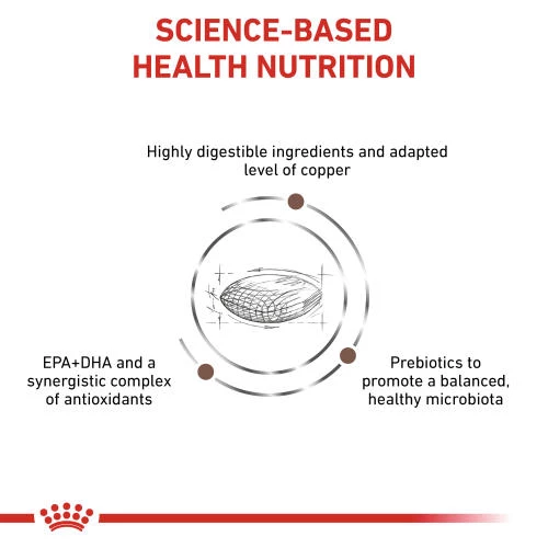 ROYAL CANIN Hepatic is tailor-made to support the nutritional needs of dogs with liver issues. This formula provides high quality and highly digestible proteins to help support your dog’s liver function in cases of chronic liver insufficiency. To help minimise the accumulation of copper in liver cells, ROYAL CANIN Hepatic is low in copper. ROYAL CANIN Hepatic is also formulated with a high energy content to help reduce the volume of your dog’s meal and decrease their intestinal load. As part of the ROYAL CANIN Veterinary Range, it is important that this product is only given to your pet when recommended by a veterinary professional.