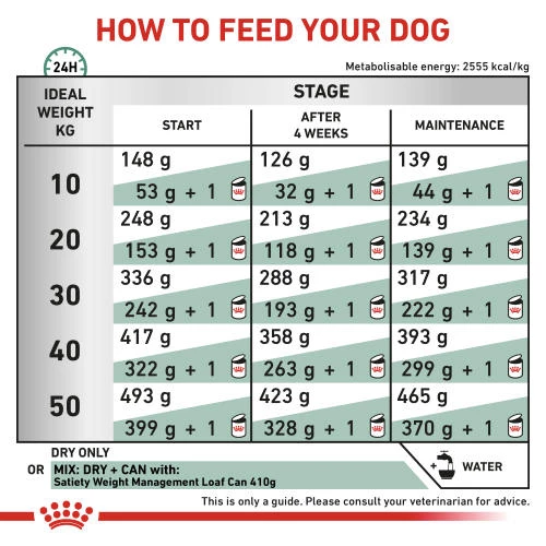 We recommend you seek an opinion from a veterinarian before beginning this diet. Once started, your dog can be fed on only Satiety Support Weight Management until they achieve their target weight. Please do not feed pregnant or lactating dogs, puppies, or dogs with conditions dictating a high energy intake on Satiety Support Weight Management.