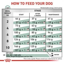 Royal Canin Satiety Weight Management for Small Dogs has an adapted macronutrient profile. Long term feeding of this diet also contributes to reducing the likelihood of your dog regaining excess weight. Thanks to its high level of natural fibres, Royal Canin Satiety Weight Management for Small Dogs helps to limit begging behaviours between meals. Satiety Weight Management for Small Dogs’ exclusive formula is specially adapted to meet and support your small dog’s digestive, urinary and dental sensitivities. As part of the Royal Canin Veterinary Range, it is important that this product is only given to your pet when recommended by a veterinary professional and that prescribed feeding rations are accurately followed, to aid this we advise weighing out the food on digital kitchen scales. It is essential to accurately follow feeding rations as prescribed by your Veterinary Practice and we recommend dividing the daily ration between 2 meals.