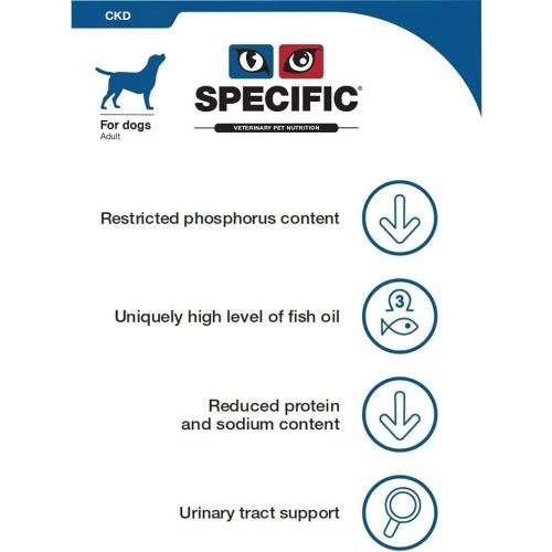 Specific CKD Heart and Kidney Support Dog Food is a delicious kibble that’s been specially formulated to provide nutritional support for adult dogs with reduced heart, kidney and/or liver function. High levels of Omega 3 from fish, reduced protein and carefully balanced vitamins and minerals support the blood pressure and reduce kidney workload.