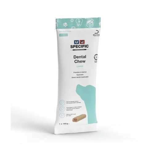 Specific CT-DC Dog Dental Chews have been created with a special flexible texture and open structure that allows teeth to penetrate deep into the chew, scraping the teeth clean, along with a long chewing time this ensures excellent cleaning.
