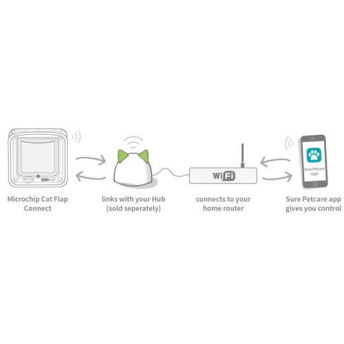 The Sureflap Microchip Cat Flap Connect is Sureflap’s most advanced cat flap yet! Like all Sureflap products, the Microchip Cat Flap Connect allows you to keep unwanted intruders out, and when combined with the Hub, helps you stay connected to your pet wherever you are.