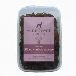 The Innocent Hound Sliced Venison Sausage Dog Treats are a simple luxury for dogs of all shapes and sizes. Made in the UK from locally sourced ingredients including prime human grade venison, The Innocent Hound air-dried sausages and chipolatas are free from soya, wheat, gluten and dairy, and packed in a handy, pocket sized resealable pack to lock in freshness.