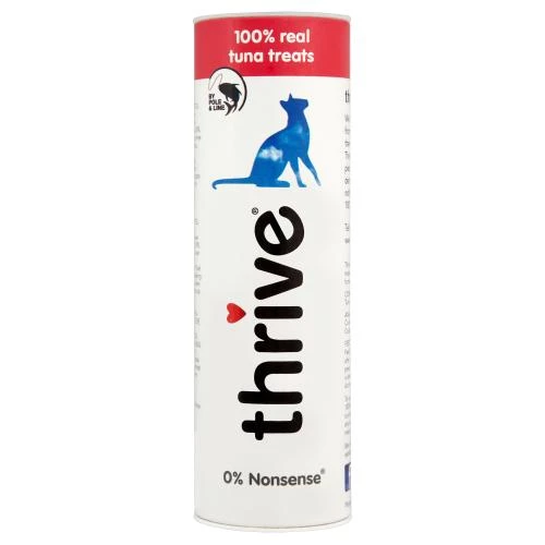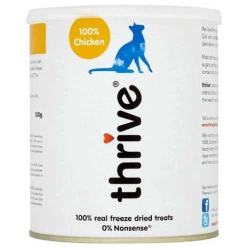 Our cats love thrive treats beacuse they are really pieces of meat and fish. Thrive treats are not made with any derivatives or other rubbish, nothing sugary or fattening. We love the reaction we get from our cats when we give them thrive treats